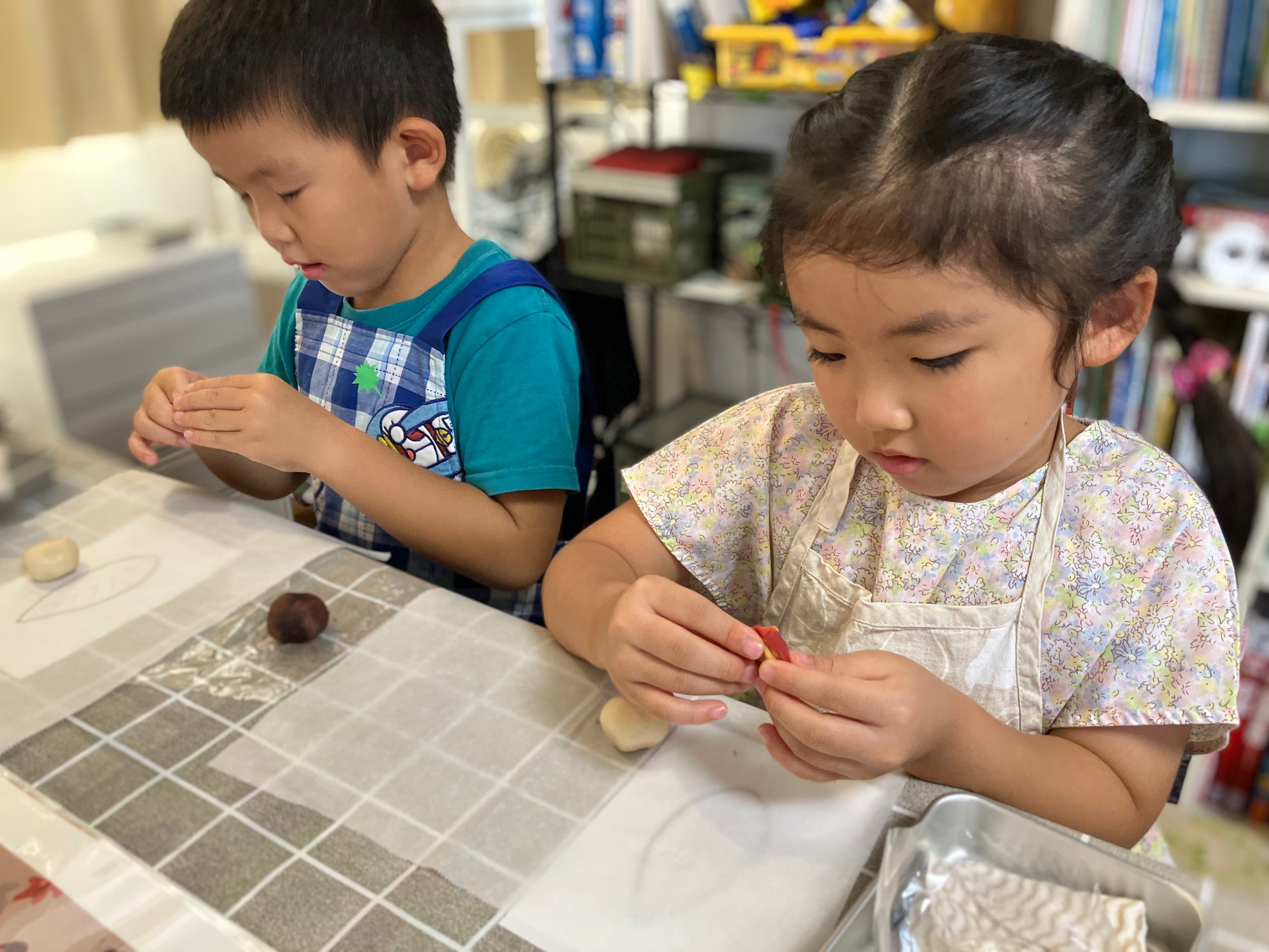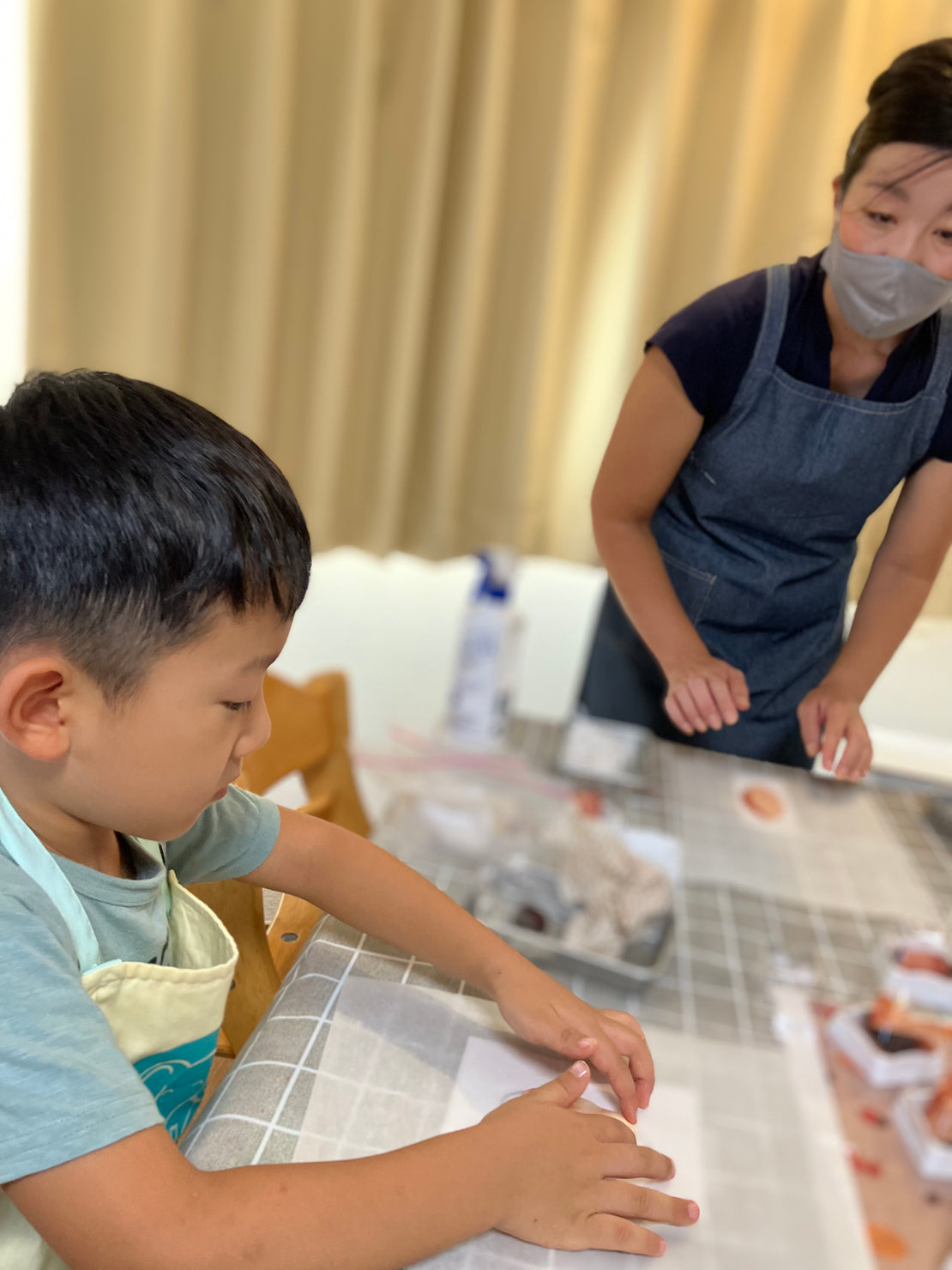 私は二児の母です。次男が幼稚園に通い始めて、お友達とみん なでワイワイ作ったらお菓子作りはもっと楽しそうだなと思うようになりました。和菓子はヘルシーで、可愛くて、日本の四季を感じながらつくって食べれ る素敵なおやつ。こども達と一緒に作れば食育にも、健康にも良 さそう、和菓子作りをきっかけに様々な食べものに興味を持ってくれたらいいなと思いました。 「こどもとたのしむ和菓子の会」は、こどももママも、お友達とハッピーに過ごす時間。作るのはこども達、ママは見守り担当。お菓子づくりの経験がなくても、難しい作業はないのでご安心ください^ ^